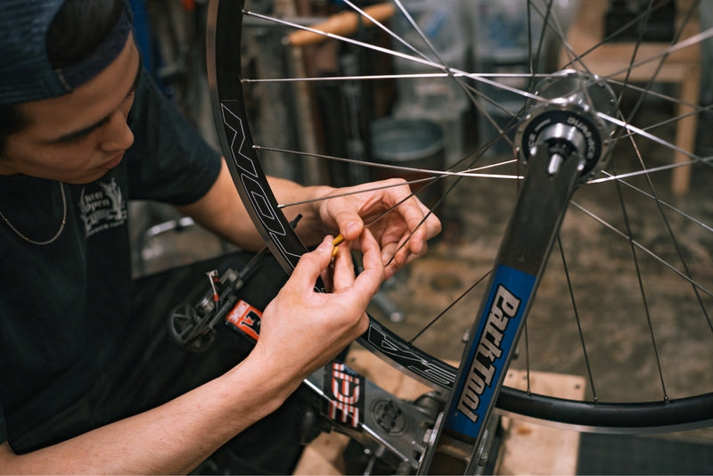 リムやハブの性能を最大限に引き出すために1本1本時間をかけて何度も確認作業を行います。
